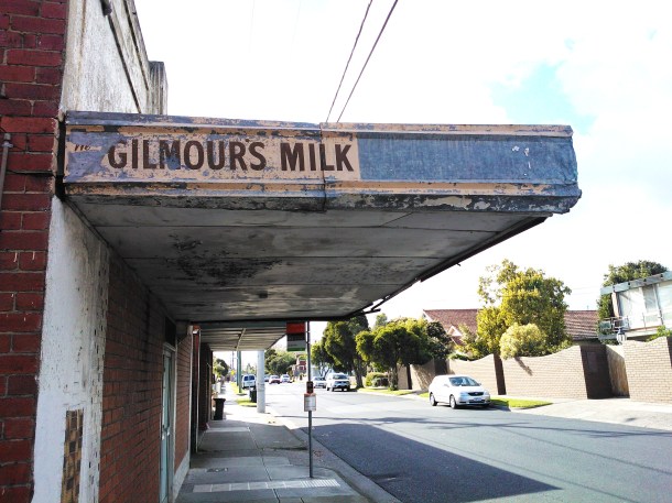Gilmour’s was obviously the local dairy for the Moreland area which would account for it being so prominent on milk bar facades all around the place.